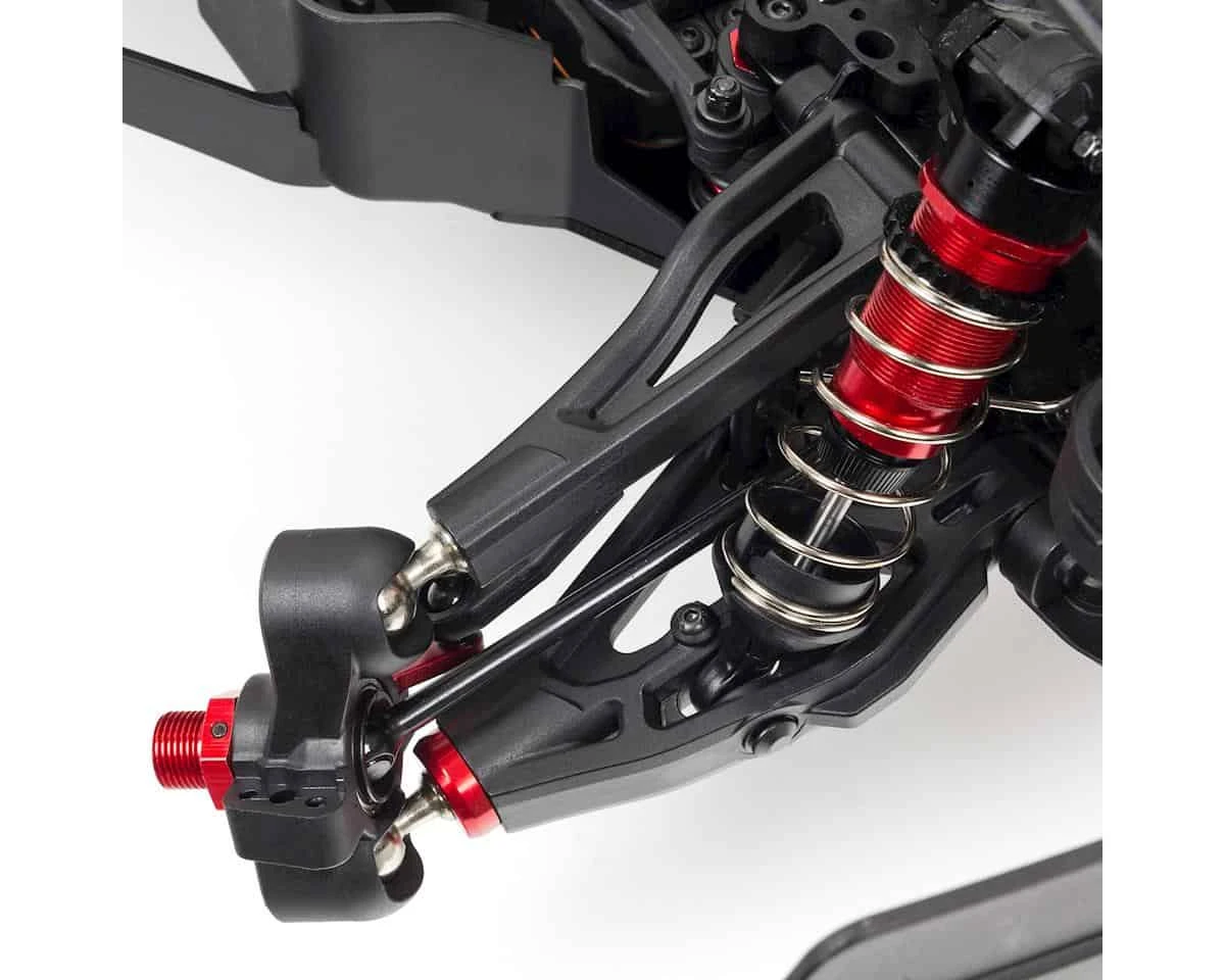 - Heavy-duty suspension arms with red-anodized aluminum strengthening cap