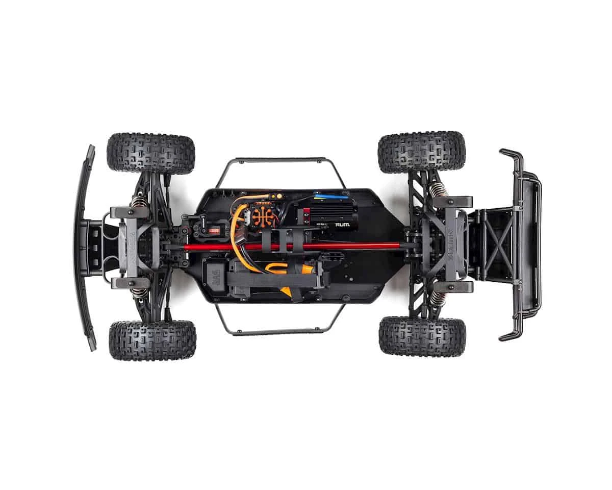 The Arrma Mojave 6S BLX Brushless RTR 1/7 4WD RTR Desert Racer V2 is fast and tough, and is ready for extreme performance right out of the box. Whether you’re thrashing through coastal sand dunes or blasting across concrete sidewalks, the Mojave 6S delivers the power and speed to thrill even the most discriminating bashers.