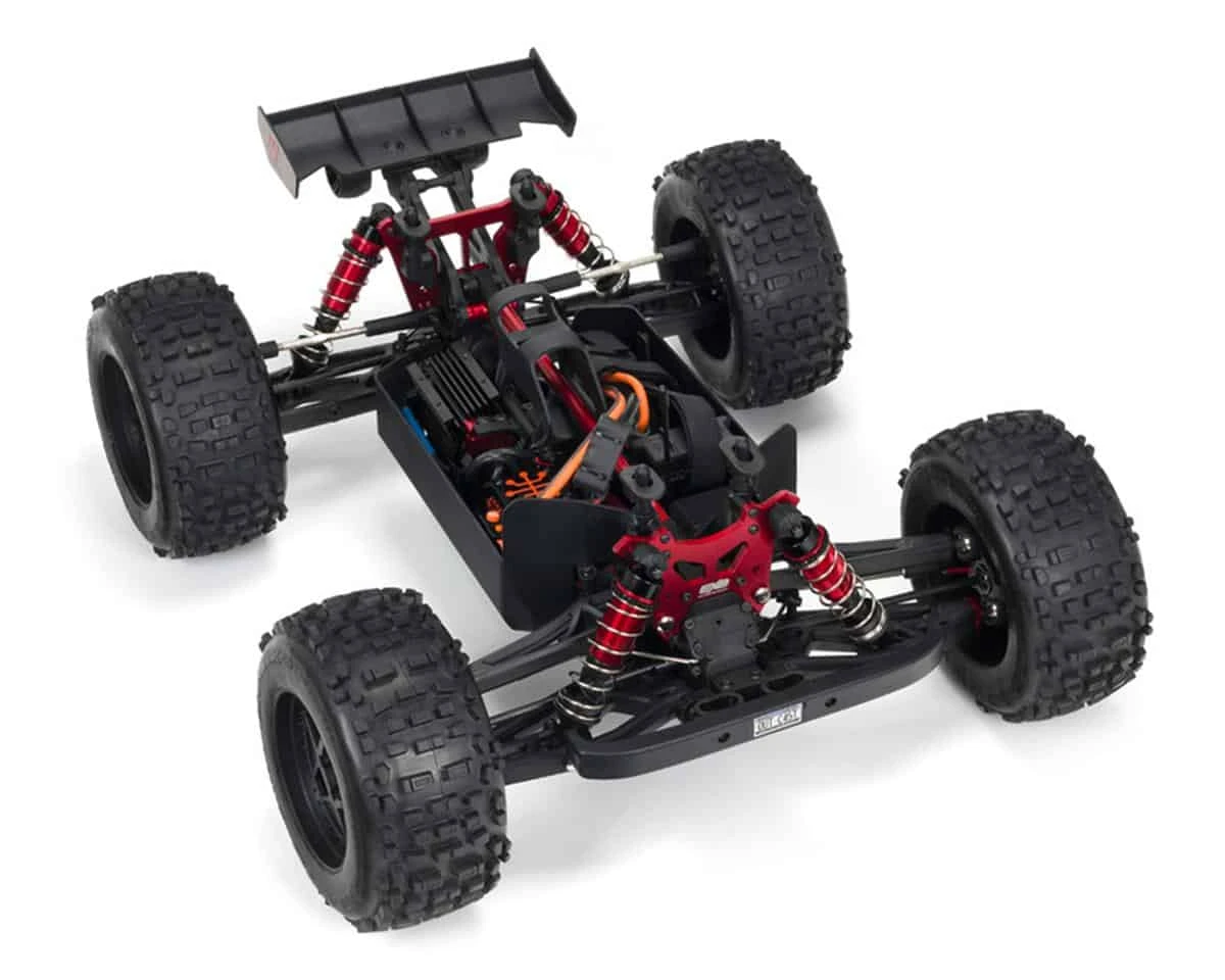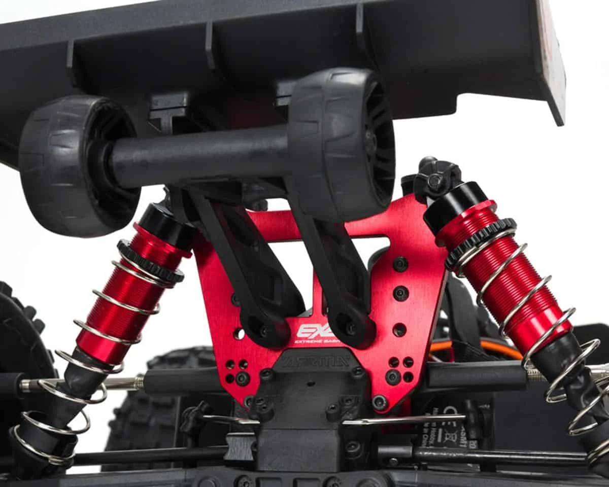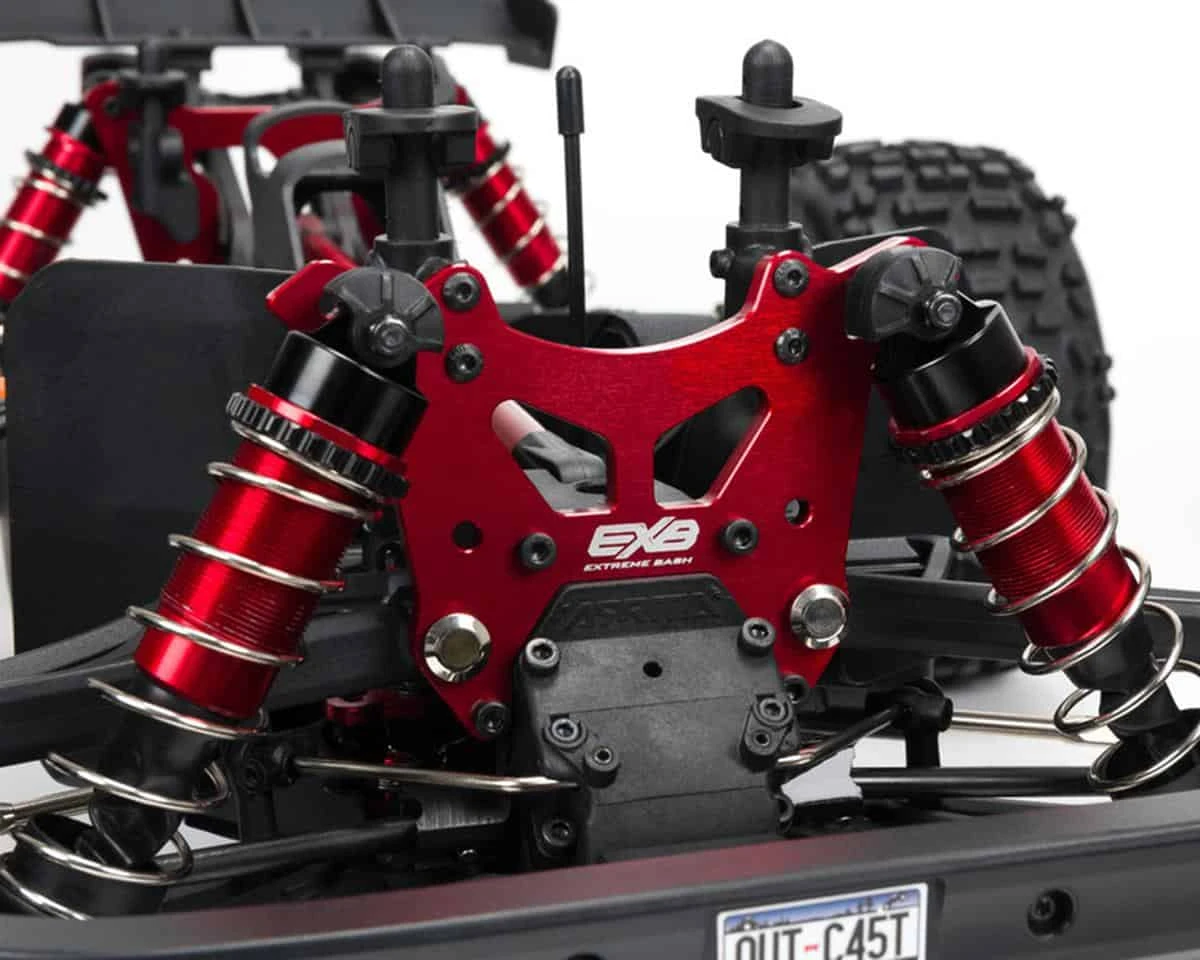 The Arrma Outcast 6S BLX Brushless RTR 1/8 Extreme Bash 4WD Stunt Truck has been built tougher than ever for the most extreme stunt bashing. Highlighting this truck is a machined 7075 T6 aluminum chassis with laser etching. An all metal drive train is used to make sure that the fun keeps going. Keeping the truck stable are adjustable oil filled shocks mounted to aluminum shock towers. The short wheelbase of this truck allows for wheelies on demand and insane flips. The pre-painted body features a matte and gloss effect that looks stunning.