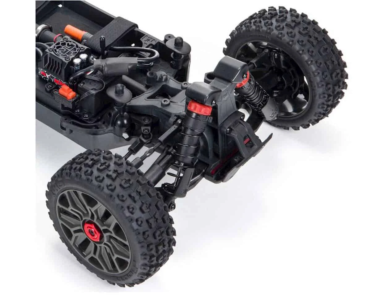 ARRMA now powers the TYPHON 4X4 3S BLX with a brushless system featuring its BLX100 ESC and the Spektrum Firma 3200Kv brushless motor. The combination provides incredible torque, acceleration and speed. The transmission and chassis are ruggedly engineered to take full advantage of the electronics’ power — in ARRMA tradition, DESIGNED FAST, DESIGNED TOUGH.