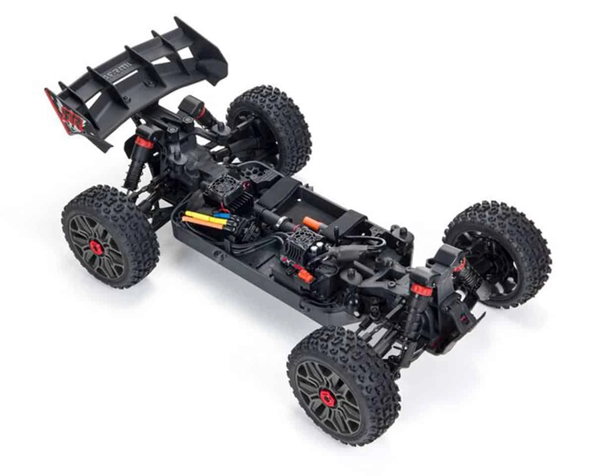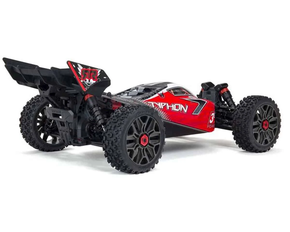 The Arrma Typhon V3 3S BLX Brushless RTR 1/8 4WD Buggy makes the move into a brushless 1/8 scale Speed Buggy action easier than ever. Fast, rugged and factory-built, the 3S LiPo-compatible ARRMA TYPHON 4X4 3S BLX RTR comes ready out of the box to bash on any terrain. Precision aluminum, tough steel and composite materials come together for an easy-to-maintain, super-durable vehicle design whose high downforce wing and low center of gravity, with wide arms and narrow wheels and tires, improve handling over race tracks, trails, muddy courses, skate parks and more. This version features new equipment that further increases the original buggy’s already impressive performance and durability.