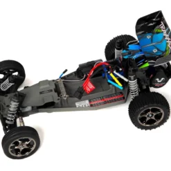 The self-bleeding, oil-filled shocks, now with silicone O-rings, use a tried and tested, coil-over design for simple maintenance and amazing handling. Their innovative rod-end has a molded-in spring perch for extra toughness. High chassis sides and a close-fitting buggy body limit the amount of dirt and debris that can get into the chassis tub. Front and rear bumpers offer defense against impacts.