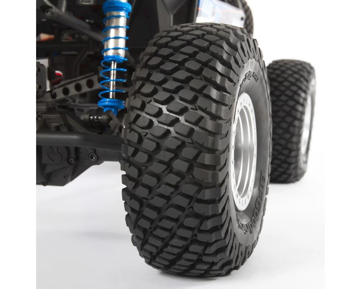 The Axial RR10 Bomber 2.0 1/10 RTR Rock Racer is prepped to dominate the rocks with electronics from Spektrum and Dynamite. The Randy Slawson version includes Trail Ready beadlock wheels wrapped with BF Goodrich Baja T/S KR3 tires. Standard features are the scale tube chassis; durable front and rear WB8 HD Wildboar driveshafts; dual slipper clutch; Hi-Lo transmission with all-metal internal gears (optional 2 speed components sold separately – AXI31181); and realistic scale details including molded driver figures, three pairs of helmets (motorsport, open-face and motocross), molded shock reservoirs and more.
