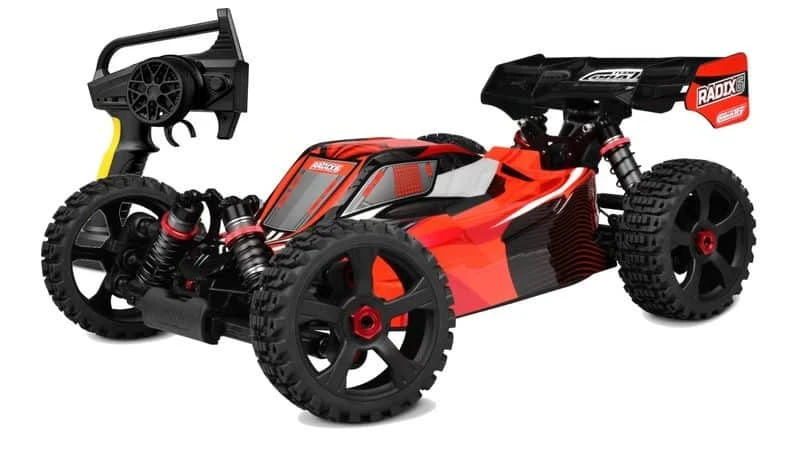 - Few RC experiences can match the unrivaled speed, handing, durability, and performance of a premium 1/8 scale electric 4WD buggy. The new Radix 6 XP 4WD 1/8 Scale Brushless Buggy from Team Corally delivers this and more in a convenient RTR package! Using a 4-6S LiPo source to power the included 2050KV brushless motor, you can utterly dominate the track or bash terrain. Want to race? It should be no surprise that the Radix 6 XP is a perfectly capable entry-level competition race car for use in Sportsman 1/8 Electric 4WD Buggy Racing (using 4S power).