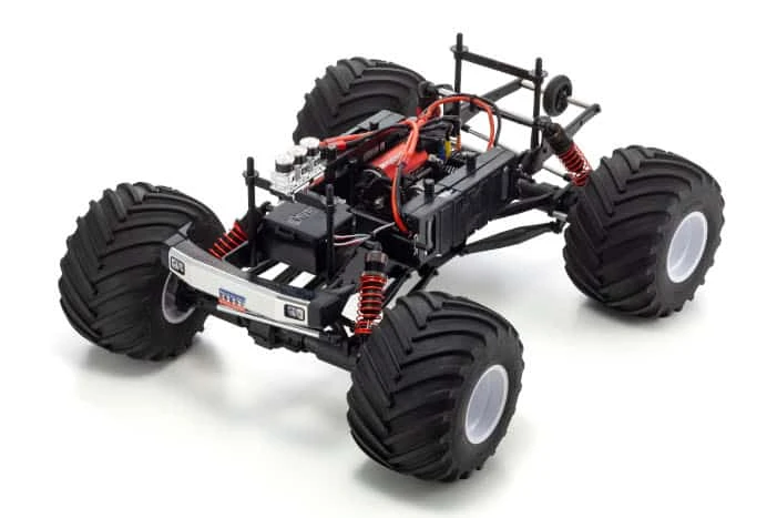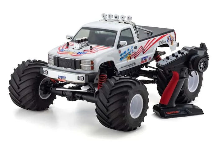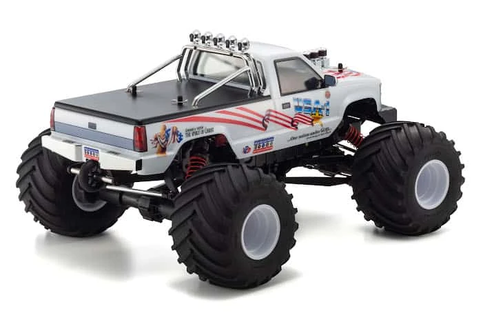 The Kyosho Monster Kruiser USA-1 VE 1/8 ReadySet Electric Monster Truck pays tribute to the most popular Monster Truck in Kyosho history. This completely updated version of the USA-1 comes 30 years later with more scale detail, more power, more durability, and more suspension!