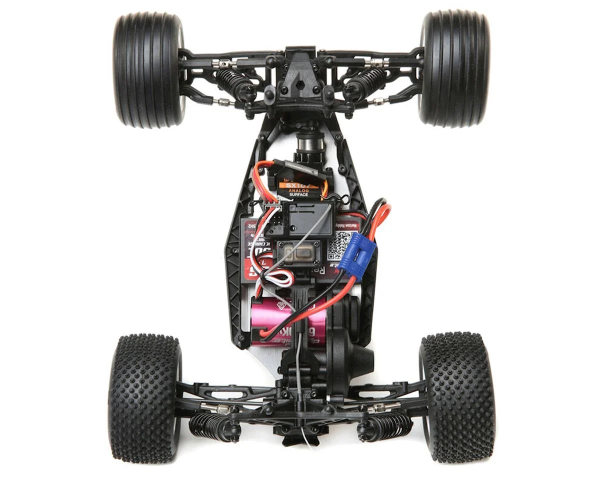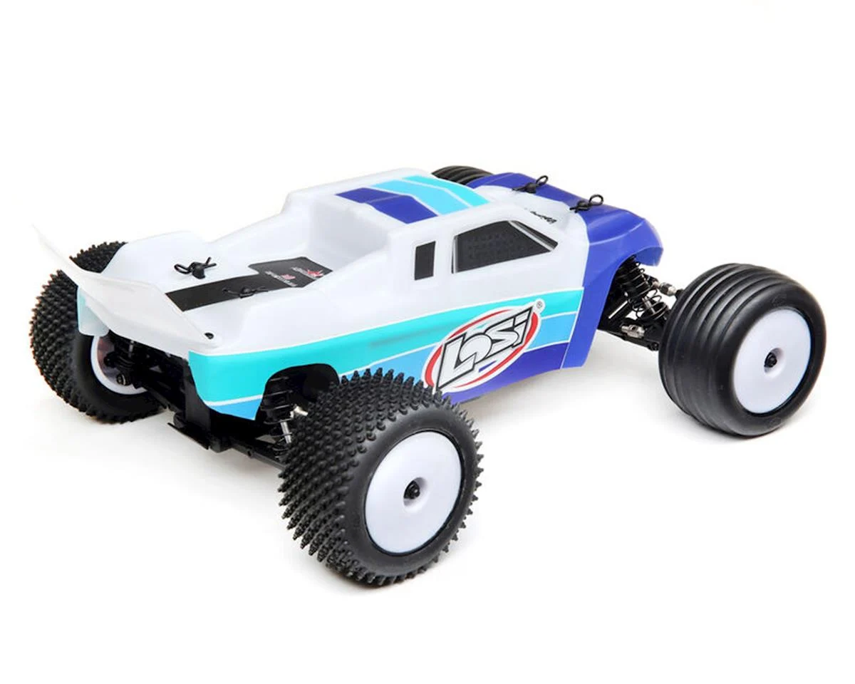 The Losi Mini-T 2.0 1/18 RTR 2WD Brushless Stadium Truck has been reinvented with modern technology and Team Losi Racing engineering. This 1/18th-scale Brushless 2WD Truck honors the heritage of the original Mini-T with a range of updated features to spring it into the future. It may be small, but the powerful performance of the Brushless 2-in-1 motor/ESC configuration mirrors 1/10 th-scale size vehicles. The Mini-T suspension geometry is based on the high-end racing TLR 22 platform, taking advantage of what Losi has learned over the years to make this generation of Mini 2wd trucks unbeatable. In addition, the Dynamite 7.4V 2S 800mAh 50C Li-Po battery provides plenty of power and the 2.4Ghz radio system keeps you in control. It features a mid-motor configuration for better balance, rear step pin and front directional tires, and a full range of option parts all in a total ready-to-run package. Available with either a bright red or blue paint scheme.