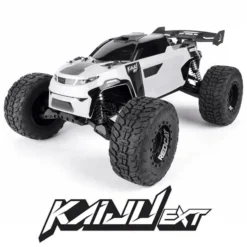 The 1:8 scale Kaiju EXT is the ultimate monster truck in performance and stability. While the Kaiju EXT started off as an extended version of the original Kaiju, it has grown into a whole new beast. The Kaiju EXT has an extended wheelbase, along with some additional major performance upgrades. These upgrades include new belted tires, motor heatsink with fan, new motor mount, metal servo horn, rear wing and a new race bred body that includes a working air scoop.