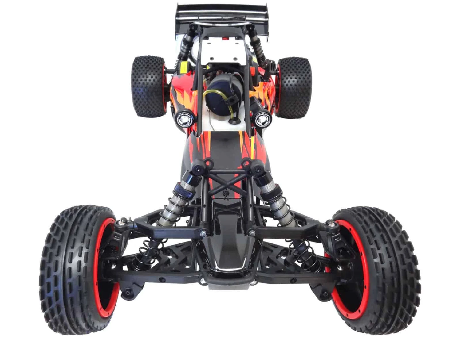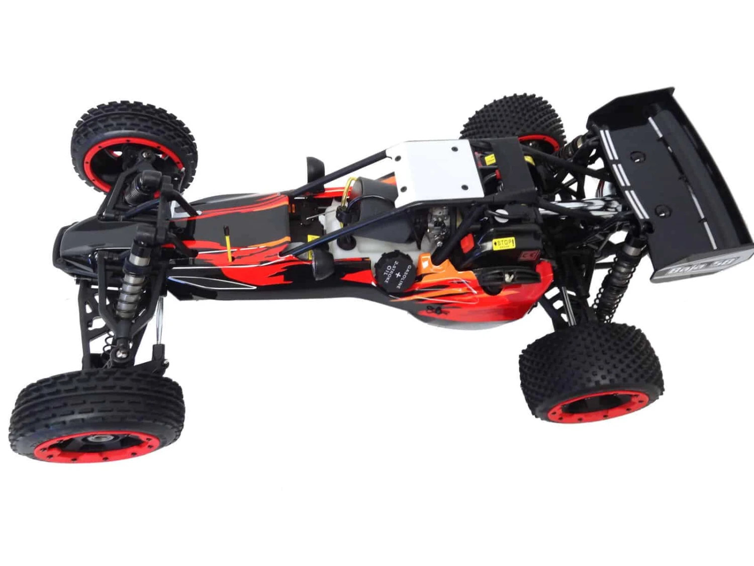 With upgraded 36cc Engine, Nylon Suspension Arms, Tuned Pipe and HD CNC Aluminum Rear Shock Brace