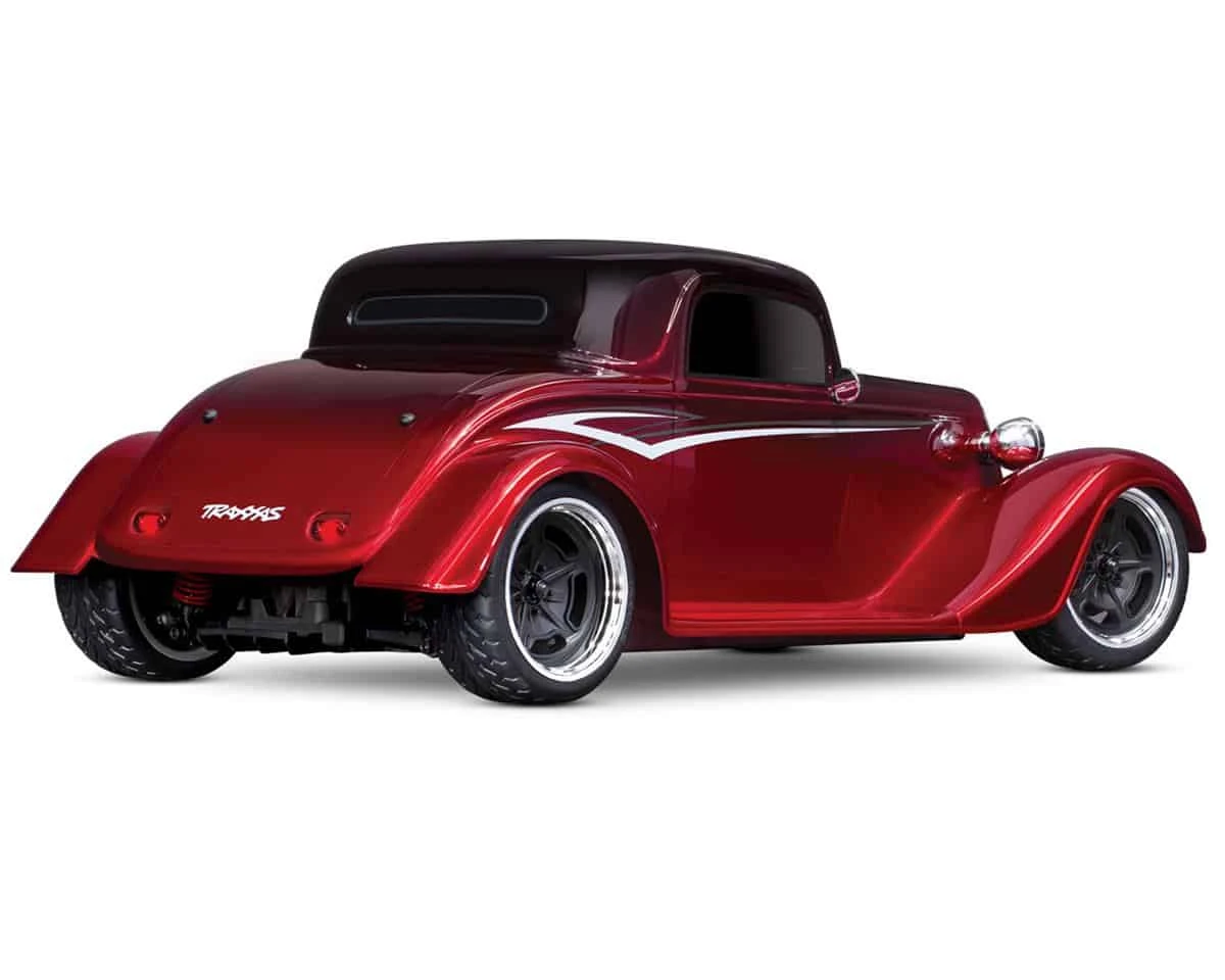 The Traxxas 4-Tec 3.0 1/10 RTR Touring Car with Factory Five ’33 Hot Rod Coupe Body gets its styling from the early days of hot rods. The 4-Tec 3.0 chassis features a three-hundred millimeter wheelbase that has been equipped with low profile suspension. This is what allows for the deep-cut body lines seen on this model. Using a modular platform, this hot rod offers extreme handling and endless tuning potential.