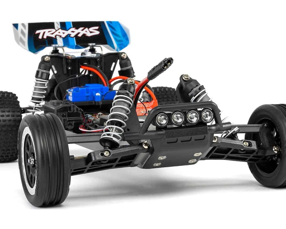 The Traxxas Bandit 1/10 Ready-to-Run 2WD Electric Buggy with LED Lights is designed to deliver great buggy performance with sleek styling. At its core, the Bandit features a light weight chassis with independent suspension front and rear. The exterior of this bandit includes four LED front pod lights and two rear brake lights. A Titan 550 motor powers the brushless-ready Magnum 272 transmission. With the Traxxas Bandit’s fully waterproof electronics, even the wildest all-weather adventures are possible. The Bandit comes ready-to-run out of the box and comes with a Traxxas TQ 2.4GHz transmitter, XL-5 ESC, 8.4V NiMH battery and a DC charger.