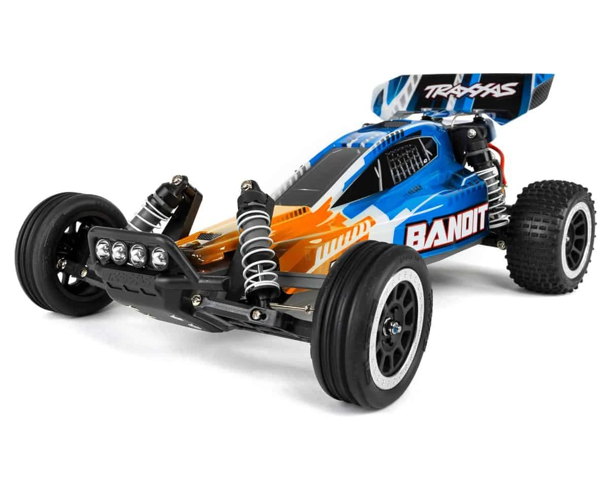 The Traxxas Bandit 1/10 Ready-to-Run 2WD Electric Buggy with LED Lights is designed to deliver great buggy performance with sleek styling. At its core, the Bandit features a light weight chassis with independent suspension front and rear. The exterior of this bandit includes four LED front pod lights and two rear brake lights. A Titan 550 motor powers the brushless-ready Magnum 272 transmission. With the Traxxas Bandit’s fully waterproof electronics, even the wildest all-weather adventures are possible. The Bandit comes ready-to-run out of the box and comes with a Traxxas TQ 2.4GHz transmitter, XL-5 ESC, 8.4V NiMH battery and a DC charger.