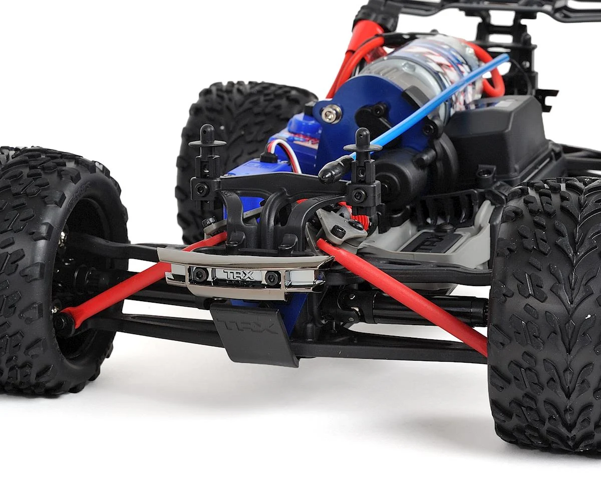 The included Titan 550 motor gives the E-Revo unstoppable climbing, roosting, and monster performance. This modified motor delivers exciting mod-motor power output with long-lasting performance, with an integrated cooling fan to keep temperatures down by pulling cool air through vent tunnels that are molded into the motor plate. A cooler running motor equates to faster speeds, longer run-time, and extended motor life. The XL-2.5 Electronic Speed Control comes standard with three drive profiles, low voltage detection, thermal shutdown protection, gold-plated connectors, and incredibly low resistance. The patented Traxxas High-Current Connector opens the door for unrestricted current flow with today’s high-power batteries.
