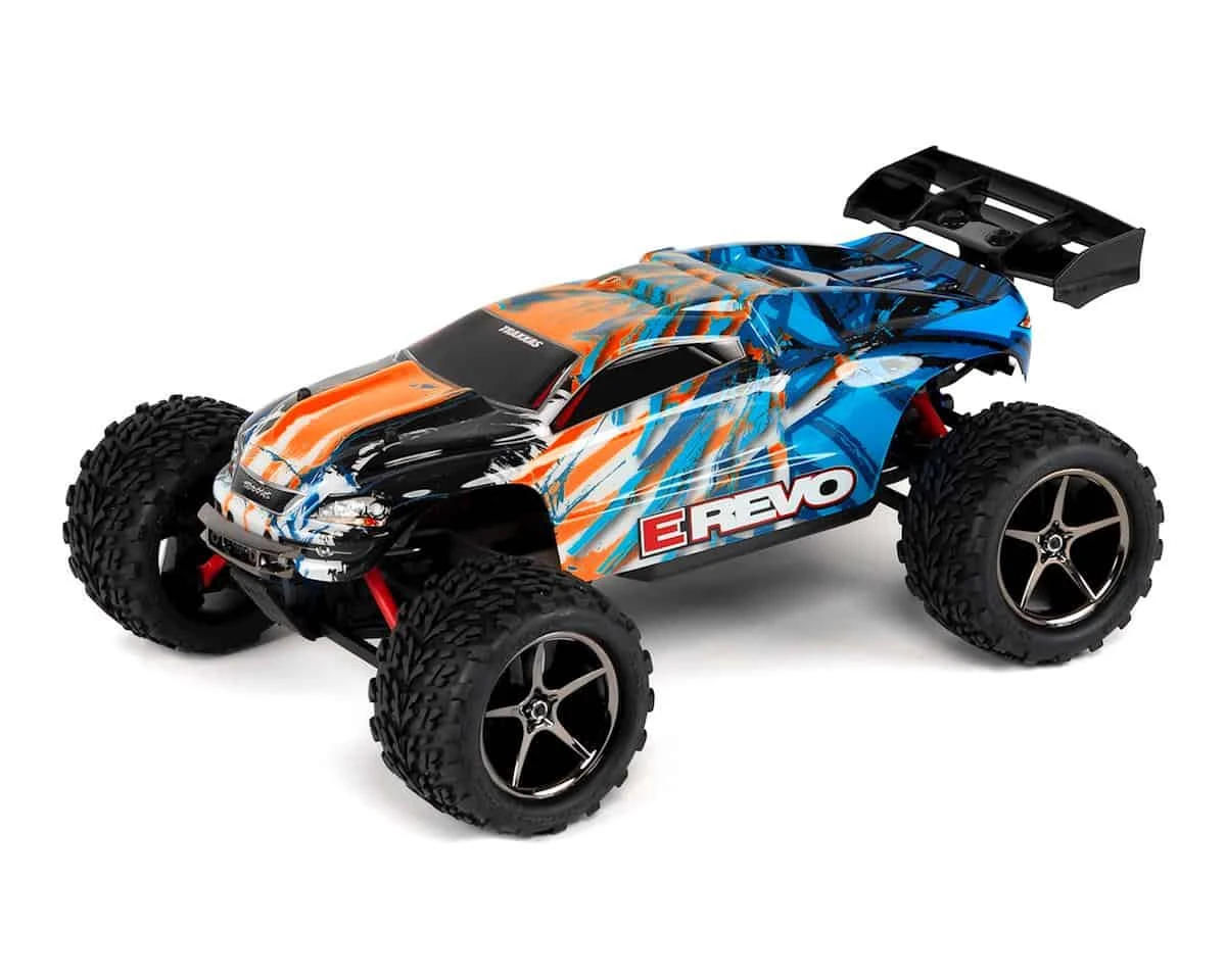 The Traxxas E-Revo 1/16 4WD Brushed Ready to Run Truck has all the quality and waterproof capability you expect from Traxxas, now available in compact 1/16 scale. At 14 inches long, this E-Revo is about half the size of the 1/10-scale E-Revo, but don’t let that fool you – this is a whole new category of RC performance and fun that no mere mini-model can match.