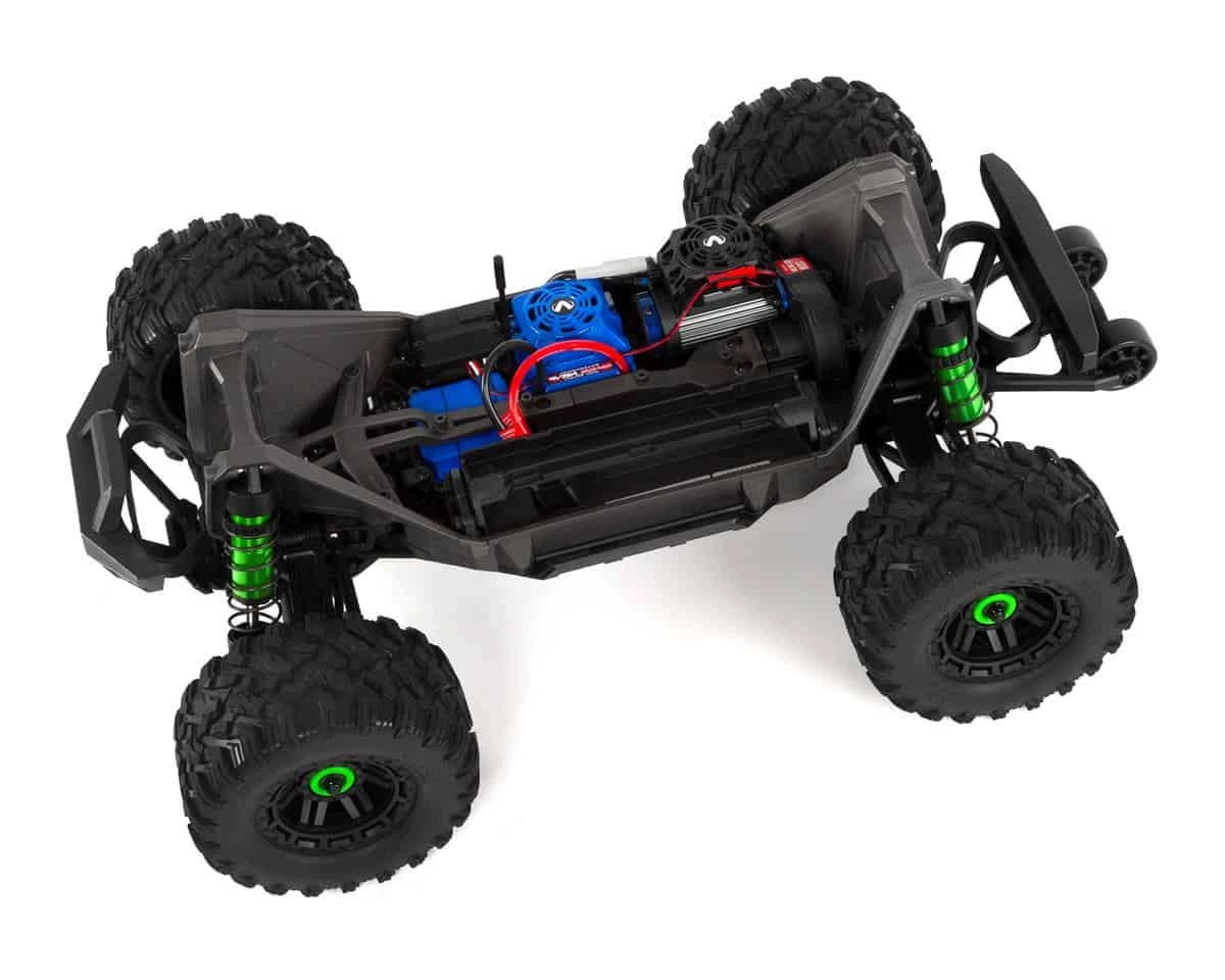 Traxxas Velineon brushless power hits hard with massive 4s punch and effortless wheelies on demand. Maxx feels like an unstoppable force of nature as top speeds reach an awe-inspiring 60+ mph.** Advanced 32-bit microprocessor-control constantly monitors the output for efficient, long-running performance. The high-output 540XL motor features a beefy, 5mm shaft, aluminum heat sink, and a powerful fan. Of course it’s all fully protected with Traxxas’ innovative waterproofing.