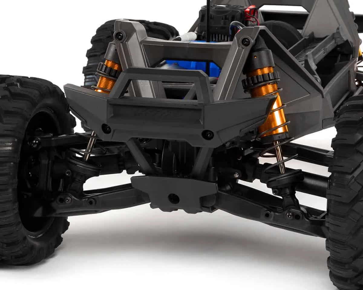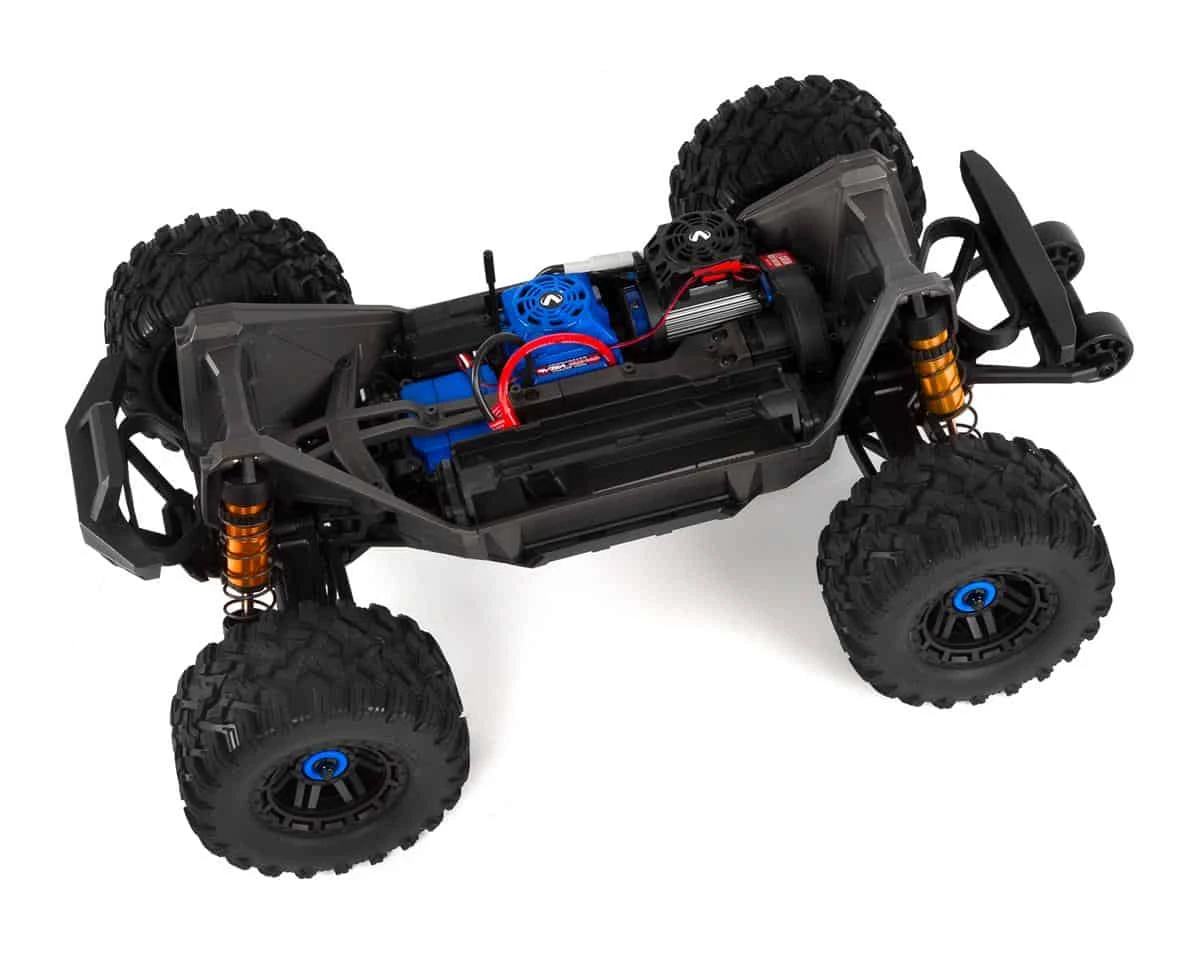 Traxxas Velineon brushless power hits hard with massive 4s punch and effortless wheelies on demand. Maxx feels like an unstoppable force of nature as top speeds reach an awe-inspiring 60+ mph.** Advanced 32-bit microprocessor-control constantly monitors the output for efficient, long-running performance. The high-output 540XL motor features a beefy, 5mm shaft, aluminum heat sink, and a powerful fan. Of course it’s all fully protected with Traxxas’ innovative waterproofing.