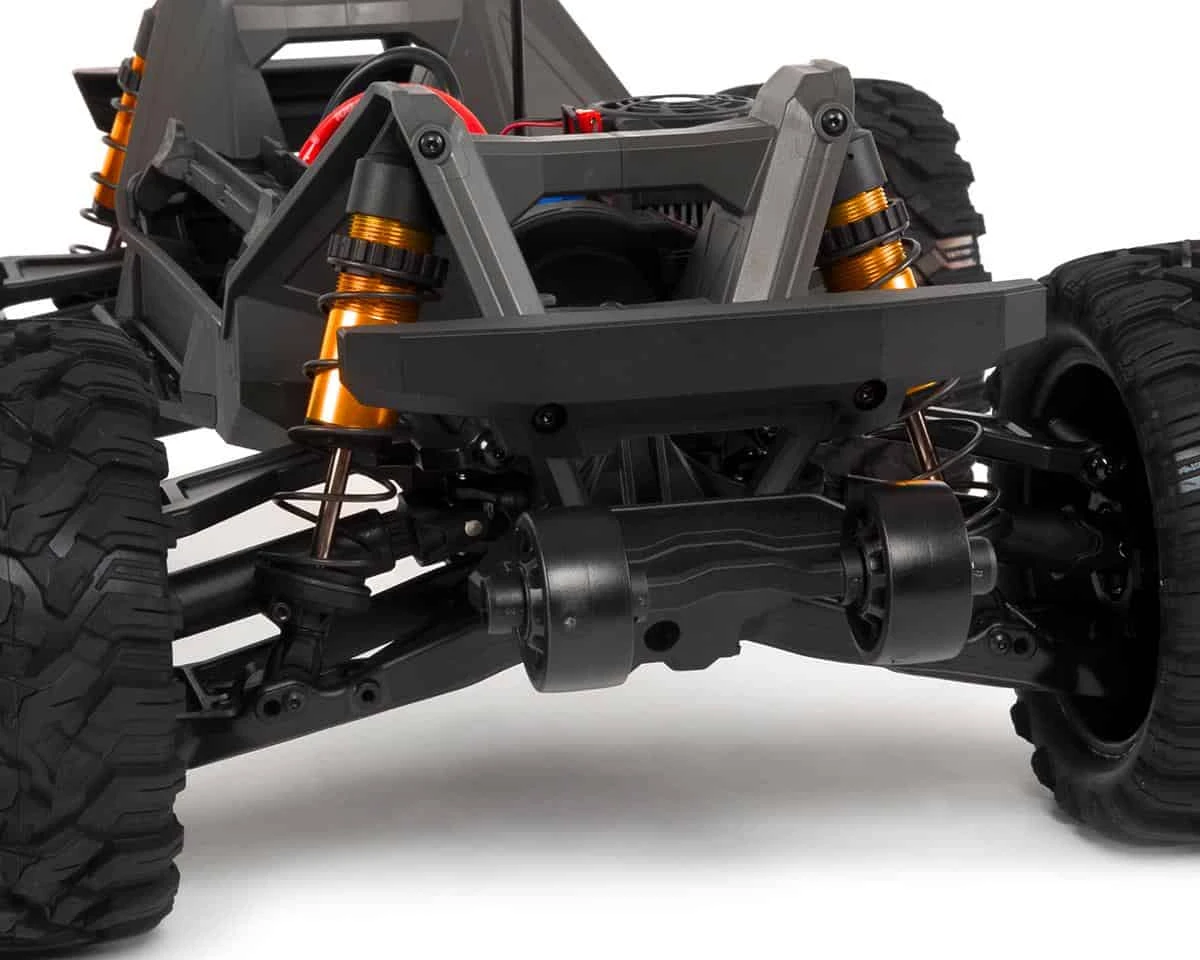 Maxx is engineered to withstand extreme punishment and intense driving action. Impact absorbing suspension arms soak up the hits with ease. The heavy-duty driveline components have been proven in vehicles larger and heavier than Maxx, so there is plenty of strength to spare. The Maxx chassis absorbs and dissipates impact energy across the entire structure. Huge threaded-aluminum GT-Maxx shocks with large diameter shafts manage suspension damping. Maxx invites you to explore new ways to drive hard and have fun!