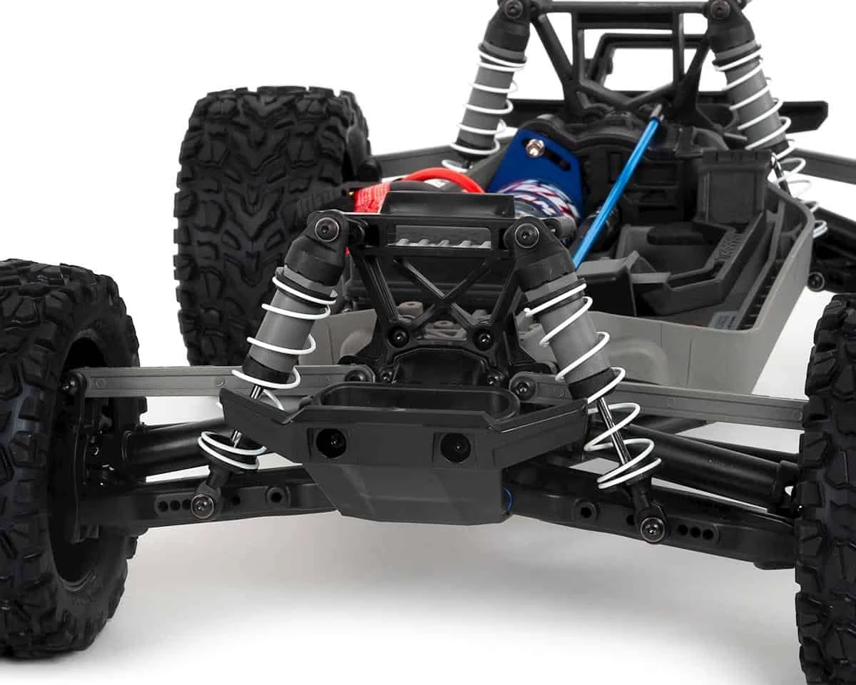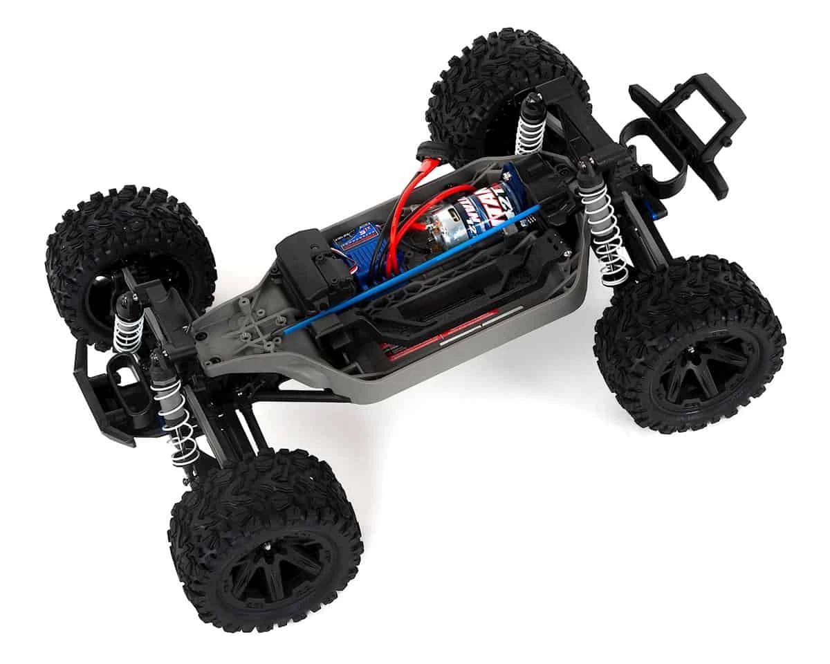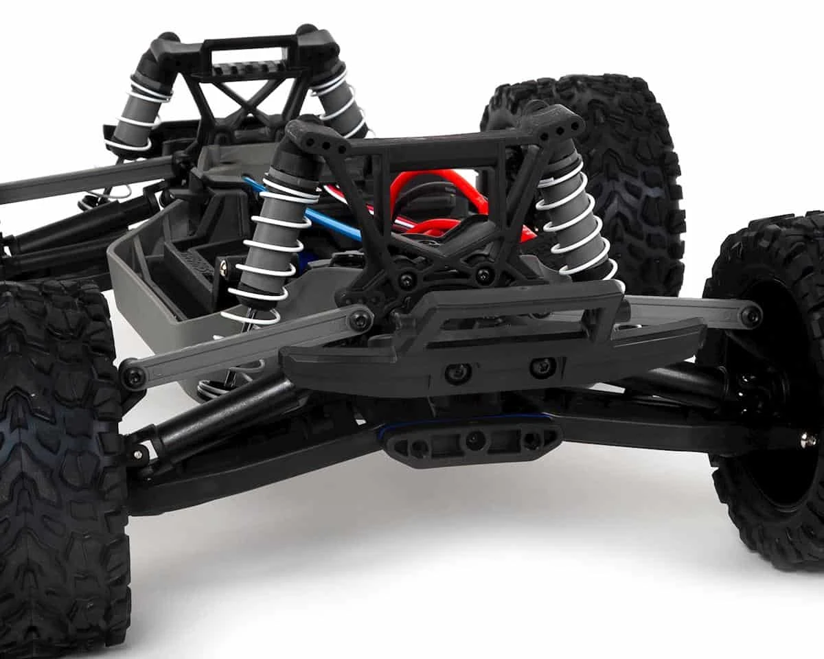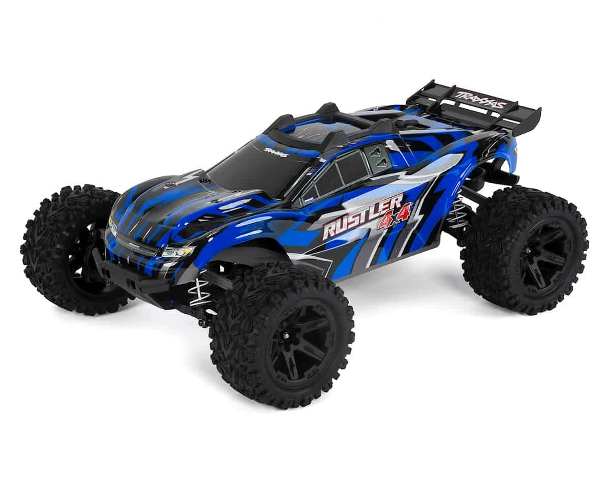 The Traxxas Rustler 4X4 1/10 4WD RTR Stadium Truck infuses the speed and agility of the number-one-selling Rustler with 4-wheel drive performance, increased durability, and even more fun! Beneath the reinforced clipless body, the redesigned chassis sits lower, wider, and longer than before for increased stability. The waterproof XL-5 electronic speed control and Titan motor deliver high-octane horsepower and all-weather fun. Large Talon EXT tires provide versatile grip on any terrain, from backyard trails to concrete skate parks.