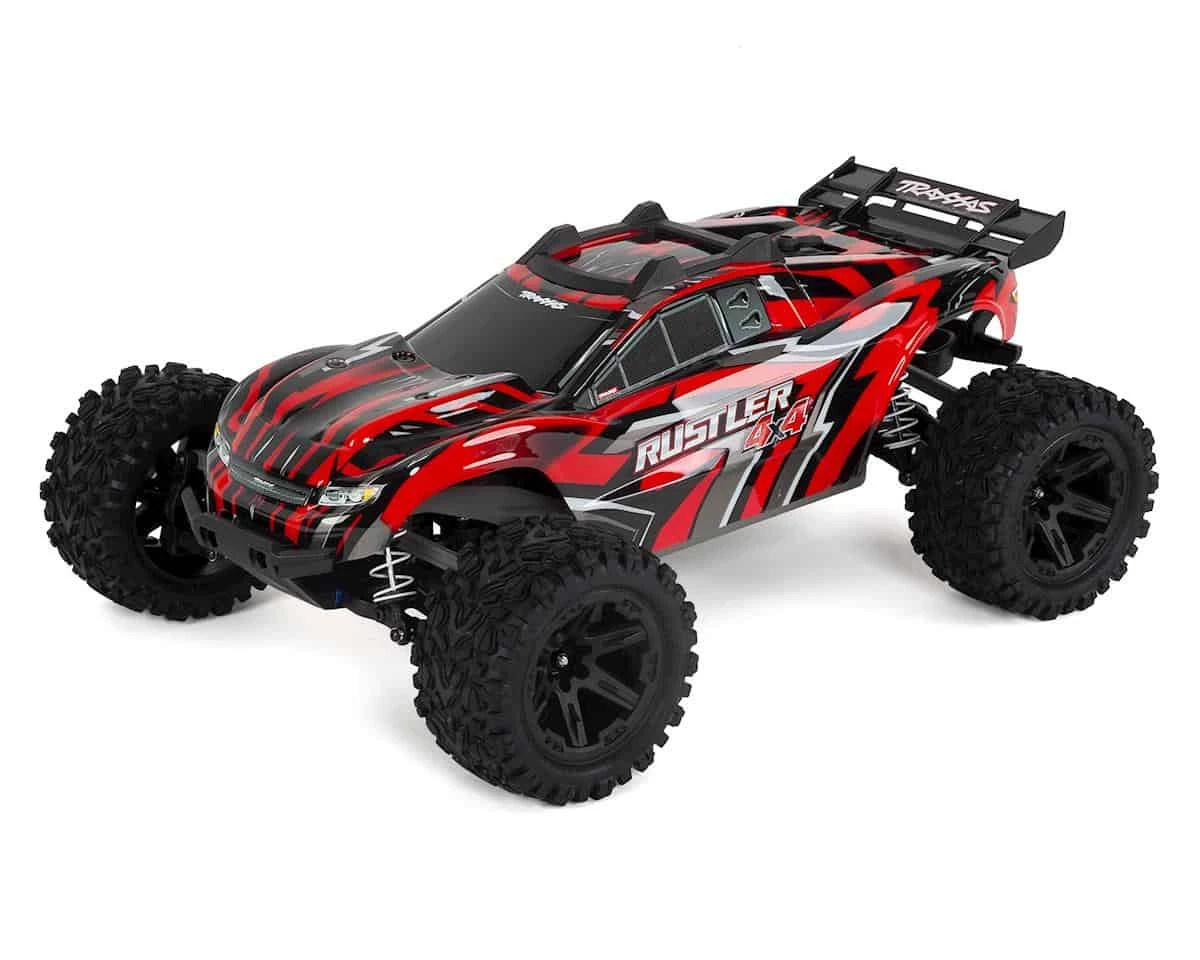 The Traxxas Rustler 4X4 1/10 4WD RTR Stadium Truck infuses the speed and agility of the number-one-selling Rustler with 4-wheel drive performance, increased durability, and even more fun! Beneath the reinforced clipless body, the redesigned chassis sits lower, wider, and longer than before for increased stability. The waterproof XL-5 electronic speed control and Titan motor deliver high-octane horsepower and all-weather fun. Large Talon EXT tires provide versatile grip on any terrain, from backyard trails to concrete skate parks.