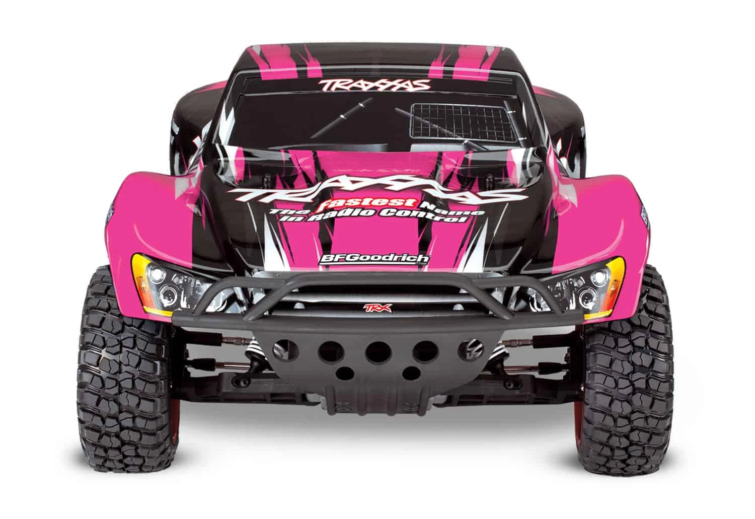 This is the Pink Traxxas Slash 1/10 Scale Ready to Run Electric 2WD Short-Course Truck, with an included TQ 2.4GHz Radio System, 7-Cell 3000mAh Power Cell Battery and 4 AMP Peak Detecting DC Charger. Now featured with this kit are the updated Traxxas iD connectors now included as standard equipment.