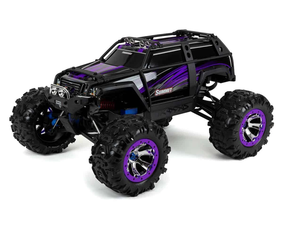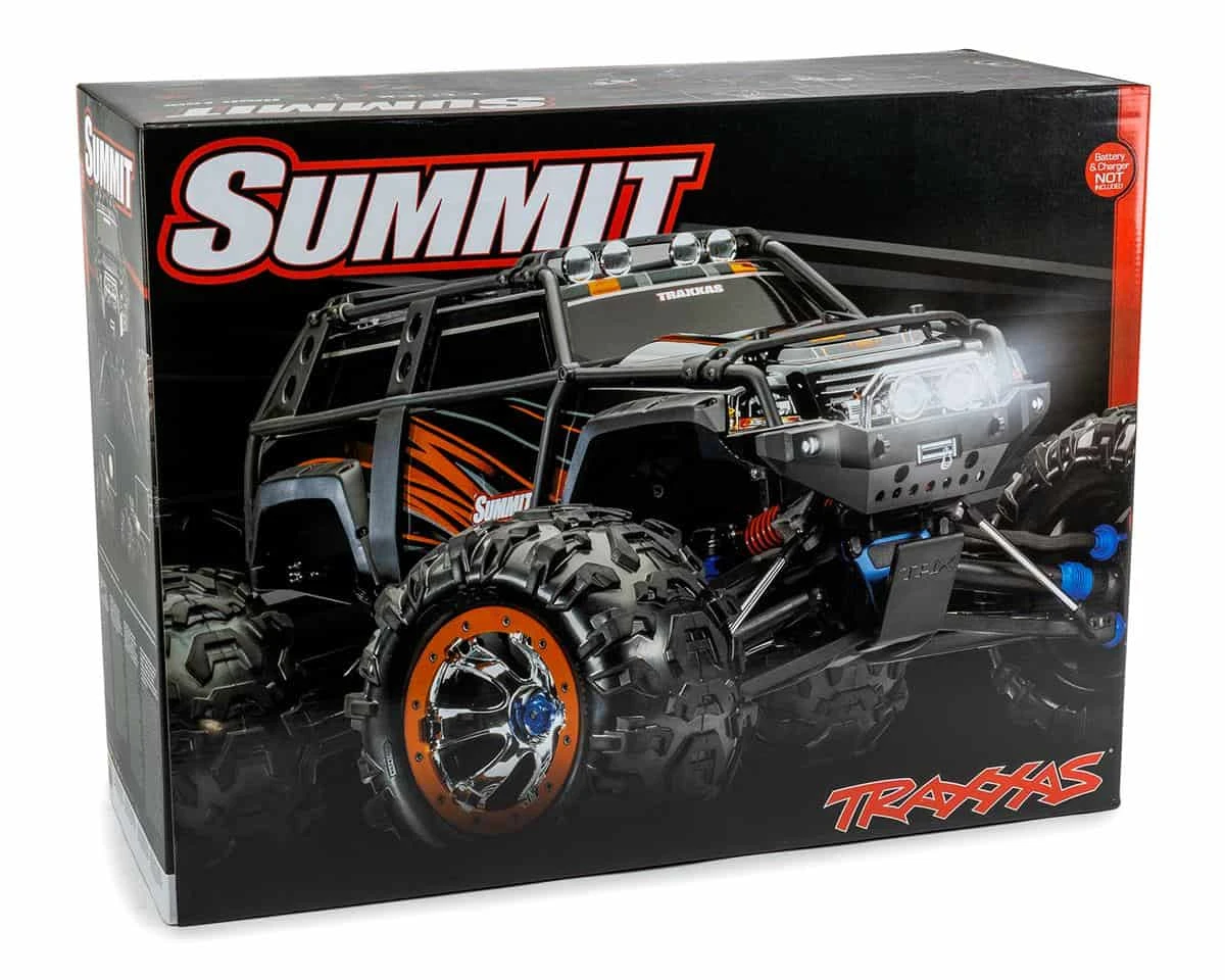 Summit gets its spin from the largest motor of any electric monster truck, the Titan® 775. This massive mill is equipped with a fan-cooled armature for nonstop off-road adventure, and an extra wrap of steel around the can for maximum magnetic field strength—that means more torque to tame the trail and conquer any climb. Designed by Traxxas, the EVX-2 features three drive profiles, thermal shutdown protection, low-voltage detection for compatibility with LiPo battery packs, and patented Traxxas high-current battery connectors. Throttle control comes from an EVX-2™ electronic speed control, a heavy-duty powerhouse that can handle up to 16.8 volts to give Summit extreme trail-conquering torque. And if that trail is wet, muddy or even covered in snow, it’s no problem. Waterproof electronics let Summit operate worry-free in conditions that sideline other monster trucks.