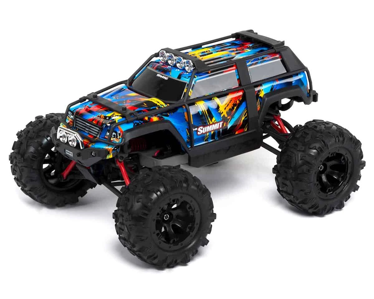 The Traxxas 1/16 Summit is now available in a Rock n’ Roll paint scheme! Combine that with Titan 12T power and you have power to match the attitude for go-anywhere off-road fun. Featuring factory-installed bright LED lights in the front and rear bumpers in addition to the roof mounted LED light bar in the Exo-Cage, the 1/16 Summit is ready to light up the night.