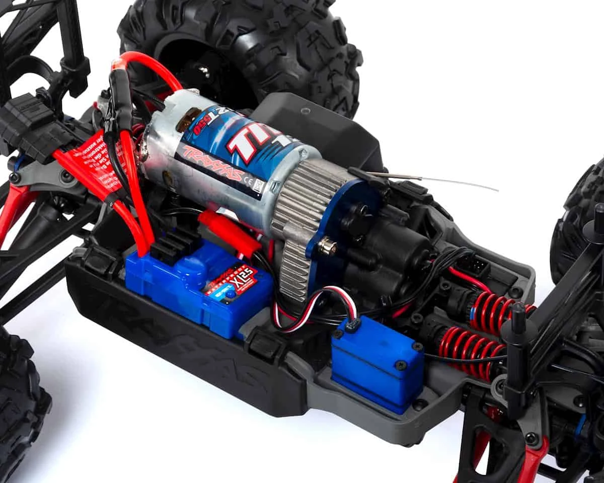 Leave it to Traxxas to stuff a 1/10 scale motor into a 1/16 scale truck! Summit’s mighty Titan 12T 550 motor delivers nearly limitless torque for tire-scorching acceleration and all-terrain capability. With massive suspension travel and 4-wheel drive traction, Summit tackles impossible terrain. Traxxas engineers combined all the big Summit’s go-anywhere versatility with waterproof electronics to make even your wildest adventures possible. Summit’s bright LED lights blaze a trail, making night runs more exciting than ever. The 1/16 Summit’s just-right size lets you enjoy hours of off-road fun anytime, anywhere!